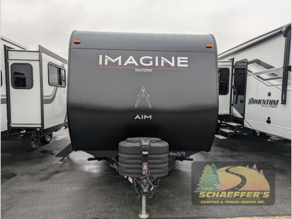 Aim for new destinations in one of these Grand Design Imagine AIM travel trailers! They are constructed to a superior standard with the 4-Seasons Protection Package that features a heated and enclosed underbelly with suspended tanks, a moisture barrier floor enclosure, a double insulated roof and front wall, and more. There is backup camera prep outside, along with a universal docking station, and a power tongue jack. You are sure to feel at home with residential cabinetry, premium window treatments, residential countertops, and a spacious walk-in shower to name a few comforts. The on-demand tankless water heater is a feature you won't want to camp without and the hi-definition LED TV will ensure you'll never go bored on rainy days. Each model also comes with four AIM packages; the Peace of Mind Package, The Ultimate Power Package, The 4-Season Protection Package, and the Solar Package!