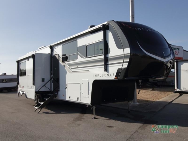 Experience the ultimate in family camping adventures with the Grand Design Influence 3804DS Fifth Wheel. Designed for comfort, convenience, and style, this fifth wheel makes every getaway an unforgettable experience. With two master bedrooms, two full baths, and quad slides, its perfect for multi-generational trips or traveling with friends while maintaining privacy and space.