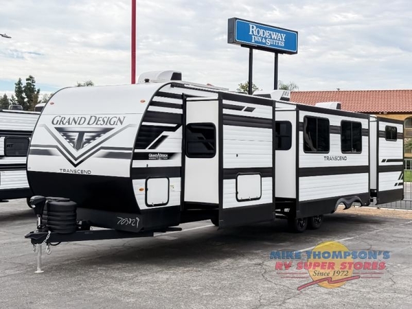 With any Transcend travel trailer by Grand Design, you will enjoy upscale appointments and convenient amenities to make each camping experience one to remember! The Quad Seal technology, residential insulated walls, plus heated and enclosed underbelly with suspended tanks make these units solid and durable. There is a black automotive glass door outside, along with a Safe-T-Rail assist on the main entry door, backup camera prep, and a universal docking station. JBL interior and exterior speakers plus a JBL head unit will let you listen to your favorite tunes as you visit under the power awning with LED strip lights. Inside, you'll enjoy multiple outlets to keep your gadgets charged, thermoformed and seamless countertops, and a 6' 6" interior height so you won't feel closed in. The Solar Prep Package will allow you to enjoy off-grid capabilities with a 200W solar panel, which is wired for up to 600W, a 30 AMP Bluetooth solar controller, a 2000W inverter prep, and more!
