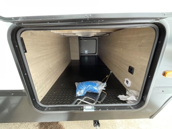 Escape to adventure with this fantastic travel trailer! The private bedroom features a plush 60" x 80" queen bed, spacious wardrobe, and TV prep for entertainment. The kitchen area is fitted with a pull-out pantry, 10 cu. refrigerator, microwave, and three-burner cooktop for gourmet meal prep. Enjoy extra counter space with the flip-up countertop extension, ideal for easy and comfortable cooking. Gather with family and friends at the theater dinette, featuring an LED HDTV for movie nights and game days after that, you can take a relaxing bath in the full rear bathroom, with ample storage. Stay organized on the go with pass-thru storage, 20 x 20 baggage door/trash can storage, and a spacious interior. Enjoy outdoor living under the shade of the 18 awning, perfect for weekend getaways, or outdoor activities for the adventure-seekers.