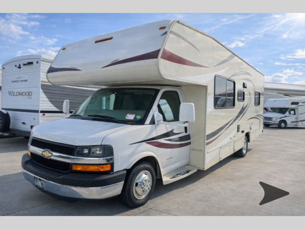 This Coachmen Freelander class C motorhome 28QB features a rear bedroom with queen size bed, and all the comforts of home on top of wheels to take you anywhere you dream to go.