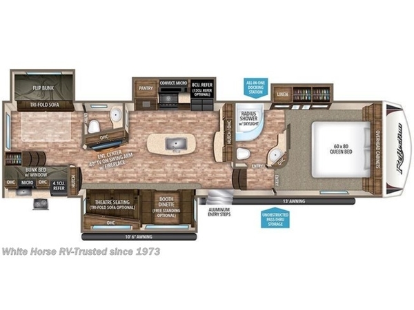 Options and packages listed reflect manufacturer-installed equipment. Package contents and some specifications may vary by unit and should be confirmed with our team. Advertised pricing does not include our RV Essentials Package ($299), documentation fee, sales tax, title, or registration.