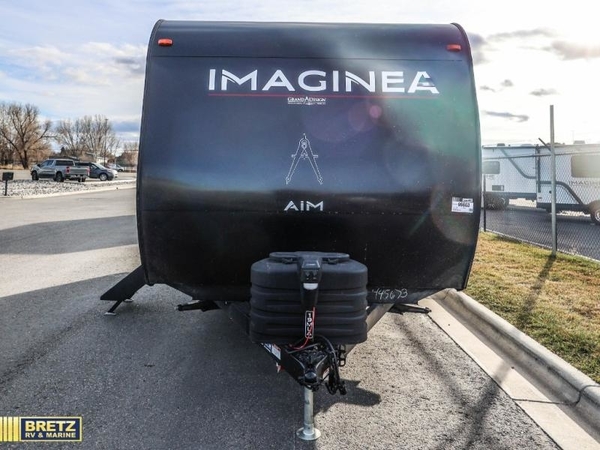 Aim for new destinations in one of these Grand Design Imagine AIM travel trailers! They are constructed to a superior standard with the 4-Seasons Protection Package that features a heated and enclosed underbelly with suspended tanks, a moisture barrier floor enclosure, a double insulated roof and front wall, and more. There is backup camera prep outside, along with a universal docking station, and a power tongue jack. You are sure to feel at home with residential cabinetry, premium window treatments, residential countertops, and a spacious walk-in shower to name a few comforts. The on-demand tankless water heater is a feature you won't want to camp without and the hi-definition LED TV will ensure you'll never go bored on rainy days. Each model also comes with four AIM packages; the Peace of Mind Package, The Ultimate Power Package, The 4-Season Protection Package, and the Solar Package!