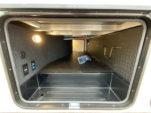This is the perfect couple's trailer with a space for an overnight guest or two little ones on the booth dinette. You can switch out this dinette for an optional swivel dinette as well, and the standard theater seating can be replaced by an optional trundle bed if you need more sleeping space. A 40" HDTV will keep you entertained when the weather isn't cooperating, and you can whip up your best meals in the full kitchen. And a 19' power awning will provide shade if you choose to take your plate outdoors! The spacious full bath will let you clean up each day, and you'll feel right at home in the front private bedroom with a queen bed!