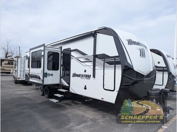 Are you looking for adventure and fun? The Momentum G-Class toy hauler by Grand Design will help you find it! You can explore during any season you choose with the Insulation Package that includes a heated and enclosed underbelly with suspended tanks, a high-capacity furnace, a moisture barrier floor enclosure, and cabinet-mounted heat ducts. Each model includes a high capacity water pump, a dovetail rear end, and 2,500-LB tie-downs anchored into the chassis. Throughout the Momentum G-Class interior, you'll enjoy many comfortable features like large panoramic windows, a shower skylight, USB chargers in the bedroom, and residential cabinetry.