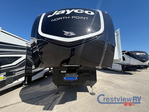 With any North Point fifth wheel by Jayco you begin with a strong foundation with a custom frame, designed and sized specifically to best support each unit. Constructed with Stronghold VBL aluminum framed, vacuum bond laminated walls and the Magnum Truss XL6 roof system with an Alpha roof membrane system, which is the strongest tested roof in the industry. The 5-Star Handling package is included with H-rated tires with TPMS, a MORryde rubber pin box, Dexter axles with Nev-R-Adjust brakes, MORryde CRE-3000 rubberized suspension and wet bolt fasteners and bronze bushings. The interior has handcrafted hardwood glazed doors and drawers, vinyl flooring throughout, an integrated under-mount sink in the main bathroom, plus so much more you just have to see one to believe it all!