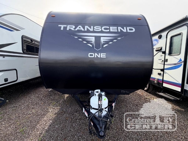 With any Transcend One travel trailer by Grand Design, you will enjoy lightweight towing thanks to their single-axle. There are many interior comforts to make camping easier than ever, such as recessed lighting, residential countertops, and a 6' 6" interior height. Each model is constructed with a heated and enclosed underbelly with suspended tanks, a moisture barrier floor enclosure, and Thermofoil over the roof and front cap for added protection. And a JBL sound system will let you listen to tunes as you visit under the power awning with a Fusion light!