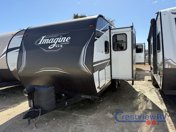Let your imagination run wild with the possibilities that the Grand Design Imagine XLS travel trailer can provide! The Imagine XLS has been built with oversized tank capacities, an extra-large 2" fresh water drain valve, a ducted A/C system, a power tongue jack, and a heated and enclosed underbelly with suspended tanks. There is a designated heat duct to the subfloor and a residential ductless heating system throughout. For outdoor adventures, the electric awning with LED lights will enable you to stay protected, and the exterior speakers make any time outside a party. You will also love the XLS Solar Package that comes with a 165W roof mounted solar panel, a 25 Amp charge controller, a 12V 10 cu. ft. refrigerator, and roof mounted quick connect plugs!