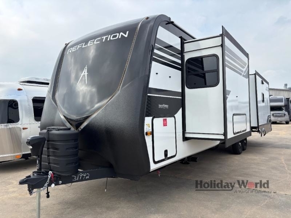With any Reflection travel trailer by Grand Design, you will have a solar panel for off-grid camping and a 60 amp charge controller and inverter prep, a Universal All-In-One docking station, unobstructed pass-through storage, and Goodyear Endurance tires. Each is constructed of gel coat exterior sidewalls, residential 5" truss rafters, walk-on roof decking, a fiberglass and radiant foil roof and front cap insulation plus laminated aluminum framed side walls, roof and end walls in slide rooms. Head inside to enjoy residential hardwood cabinet doors, premium Congoleum flooring, a spacious shower with a glass door, and many more comforts!