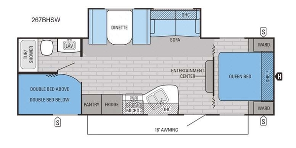 Let your next camping adventure include the Jay Flight SLX 267BHSW travel trailer by Jayco! With a single slide, rear bunk house, and front bedroom there is room for your whole family, plus a few extra!