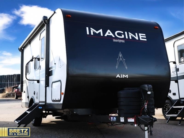 Aim for new destinations in one of these Grand Design Imagine AIM travel trailers! They are constructed to a superior standard with the 4-Seasons Protection Package that features a heated and enclosed underbelly with suspended tanks, a moisture barrier floor enclosure, a double insulated roof and front wall, and more. There is backup camera prep outside, along with a universal docking station, and a power tongue jack. You are sure to feel at home with residential cabinetry, premium window treatments, residential countertops, and a spacious walk-in shower to name a few comforts. The on-demand tankless water heater is a feature you won't want to camp without and the hi-definition LED TV will ensure you'll never go bored on rainy days. Each model also comes with four AIM packages; the Peace of Mind Package, The Ultimate Power Package, The 4-Season Protection Package, and the Solar Package!