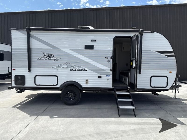 Any time spent in this travel trailer will be time well spent! You can easily sleep eight people each night thanks to the double-size bunks, front Murphy bed, and U-shaped dinette within the slide out. There is a full bath next to the bunks for easy nighttime use, and the linen closet will be perfect for clean towels. A cooktop, microwave oven, and 8 cu. ft. 12V refrigerator will let you cook and store food, and there is an overhead cabinet for spices or snacks! The optional Baja Package can be added on this model which includes 16 in. off-road tires, a deluxe graphics package, triple entry steps, and more!