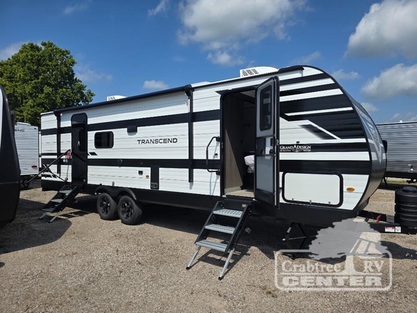 With any Transcend travel trailer by Grand Design, you will enjoy upscale appointments and convenient amenities to make each camping experience one to remember! The Quad Seal technology, residential insulated walls, plus heated and enclosed underbelly with suspended tanks make these units solid and durable. There is a black automotive glass door outside, along with a Safe-T-Rail assist on the main entry door, backup camera prep, and a universal docking station. JBL interior and exterior speakers plus a JBL head unit will let you listen to your favorite tunes as you visit under the power awning with LED strip lights. Inside, you'll enjoy multiple outlets to keep your gadgets charged, thermoformed and seamless countertops, and a 6' 6" interior height so you won't feel closed in. The Solar Prep Package will allow you to enjoy off-grid capabilities with a 200W solar panel, which is wired for up to 600W, a 30 AMP Bluetooth solar controller, a 2000W inverter prep, and more!