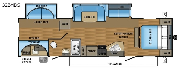 Double slide outs, a rear bunkhouse for your kids, an outside kitchen, and two entry doors are just a few of the key features that you will love about this 32BHDS Jay Flight by Jayco!