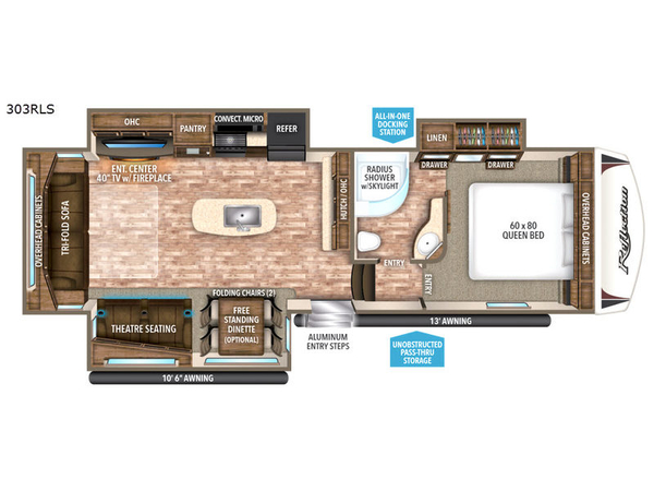You are sure to enjoy the exterior unobstructed pass-through storage, all-in-one docking station, and two awnings, plus more!
