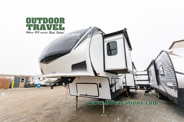 Looking for a separate living area from the kitchen in your next RV? Do you want to be able to entertain while camping? Well this fifth wheel has what you want, plus much more! The rear living area has two opposing tri-fold sofas, and theatre seating directly across from the rear entertainment center with a 50" LED HDTV and a 48" fireplace below it, plus windows and storage. The middle kitchen area offers the cook a large pantry, a 16 cu. ft. refrigerator, and extra counter space around the deep seated stainless steel sink. And there is a free standing adjustable dinette with a storage ottoman and more counter space nearby giving you a place for your things while dining, playing game or even working. The full bathroom can be accessed from the hallway that leads to the front bedroom which offers a queen bed slide or choose a king option, a dresser with window above, plus a full wall wardrobe with a place to add a washer/dryer option to keep everything clean while away.