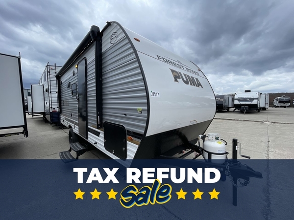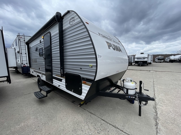 The Puma Camping Edition by Forest River offer an affordable travel trailer for rookie campers or seasoned RVers! They are built with 5/8" tongue and groove plywood flooring and a front diamond plate for added protection. There are also exterior magnetic baggage door latches, back up camera prep, a battery disconnect. Head inside to find Thermofoil countertops with a smooth drop edge, bedroom USB ports and outlets, and pleated shades in the living room.