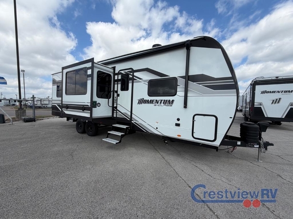 Are you looking for adventure and fun? The Momentum G-Class toy hauler by Grand Design will help you find it! You can explore during any season you choose with the Insulation Package that includes a heated and enclosed underbelly with suspended tanks, a high-capacity furnace, a moisture barrier floor enclosure, and cabinet-mounted heat ducts. Each model includes a high capacity water pump, a dovetail rear end, and 2,500-LB tie-downs anchored into the chassis. Throughout the Momentum G-Class interior, you'll enjoy many comfortable features like large panoramic windows, a shower skylight, USB chargers in the bedroom, and residential cabinetry.