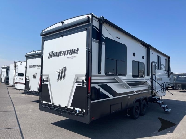 Are you looking for adventure and fun? The Momentum G-Class toy hauler by Grand Design will help you find it! You can explore during any season you choose with the Insulation Package that includes a heated and enclosed underbelly with suspended tanks, a high-capacity furnace, a moisture barrier floor enclosure, and cabinet-mounted heat ducts. Each model includes a high capacity water pump, a dovetail rear end, and 2,500-LB tie-downs anchored into the chassis. Throughout the Momentum G-Class interior, you'll enjoy many comfortable features like large panoramic windows, a shower skylight, USB chargers in the bedroom, and residential cabinetry.