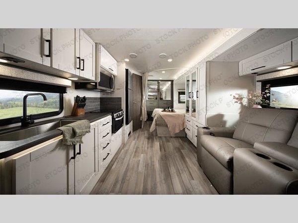 Each Jayco Redhawk Class C gas motorhome includes the JRIDE® system that features a computer-balanced driveshaft, standard front and rear stabilizer bars, Hellwig helper springs, and rubber isolation body mounts to absorb road shock, dampen noise and minimize vibrations. The cab offers a Sony® infotainment center with Apple CarPlay and Android Auto, backup and side-view cameras for safety and easier parking, and a tire pressure monitoring system. Inside you will love the headroom with a 7-foot ceiling height, the LED-lit pressed countertops and decorative kitchen backsplash, plus the stainless-steel bathroom sink when it is time to clean up. Looking for value, technology and comfort, choose your favorite Redhawk today!