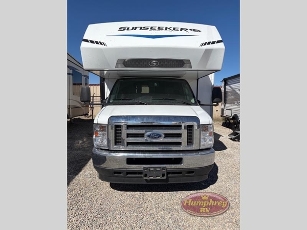 Don't make the mistake of passing up this Sunseeker LE Class C gas motorhome! There is a full bathroom with a shower skylight, oxygen-infused shower head with flexible extension, and an electric roof fan, and the bathroom is right next to the bedroom for convenience. The pantry, linen closet, wardrobe, and overhead storage offer you places to tuck away your belongings, and there are also two large storage drawers in the booth dinette as well. While you're resting on the sofa, you can watch the 12V LED TV, or you can chat with the chef who is preparing dinner on the recessed three-burner range or in the convection microwave.