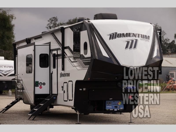 The Momentum fifth wheel toy haulers by Grand Design are built for four seasons of travel with your off-road toys and include luxurious accommodations throughout for extreme living! Each is constructed to a superior standard with the fully enclosed and heated underbelly and storage area, the 5-sided aluminum cage, and the triple insulated garage floor. The MORryde independent suspension 2.0 and rubber pin box, plus the upgraded axle hangers provide the performance and smooth towing you desire, while the interior offers luxury such as color changing LED accent lighting, hardwood cabinet doors with hidden hinges, and a central vacuum system. Each toy hauler also includes four packages, including the Garage Package with Tuff-Ply gas and oil-resistant flooring, the Weather-Tek Package with a Stealth AC System, and the Interior Luxury Package with solid surface countertops!