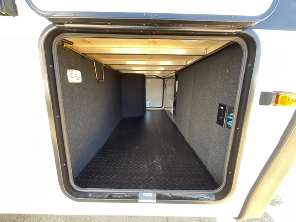 Whether you travel to explore or relax, this trailer will give you the choice depending where you park it! The kitchen amenities offer a gourmet kitchen including a 16 cu. ft. refrigerator, an island, and a hutch. You and your guests will find theater seating with cupholders, a booth dinette or optional swivel dinette, and a tri-fold sofa to sit on and visit while you watch the 40" LED HDTV with a fireplace below. The full bathroom includes a space saving sliding door and linen storage, and the bedroom gives you a front walk-around queen bed with storage for your clothes on each side. There is even washer and dryer prep here if you choose to go full-time. Outside, you'll find a 12' electric awning, an LP Quick Connect and Coax TV hookup, plus an exterior griddle, 4.1 cu. ft. refrigerator and outside spray port!