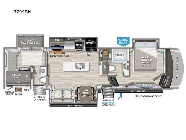 If youre searching for a spacious, luxury fifth wheel thats built for families, extended travel, and unforgettable adventures, the Used 2024 Grand Design Influence 3704BH is an outstanding choiceespecially when purchased from Campers Inn RV, where your journey truly begins.