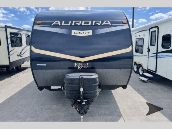 Comfortability, usability, and quality is what you will find in each one of these Forest River Aurora travel trailers, toy haulers or destination trailers! They are designed with a superior build and packed full with industry leading, functional, and distinctive standard features. SolidStep entrance steps and a Safe-T rail door assist on main entry door to help you safely enter and exit the unit. The diamond plate rock guard will protect your unit from road debris and the nitrogen filled radial tires, which keep their pressure longer, offer better fuel economy. You will also find upgraded JBL Elite exterior speakers outside, an electric awning with multicolor lights and remote, plus flush mount baggage doors for easy packing. The interiors are beautifully designed with a deep undermount farm style sink, stainless steel appliances, and linoleum flooring throughout which will be easy to clean. Come find your favorite model today!