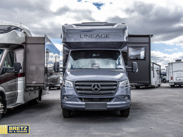 Grand Design's first motorized coach, the Lineage Series M is coming to you with luxurious features at a great value. This Class C diesel motorhome sits on a Mercedes-Benz sprinter chassis for quality and performance you can trust. True to Grand Design's foundation, the Lineage includes interior comforts, durable construction, innovative features, and attention to detail. The Series M Package includes natural teak wood grain, a Lineage Suspension Package, and more. There is also a Blackout Package with black aluminum wheels, a Chromeout Package with chrome aluminum wheels, plus additional packages to enhance your travel experience!