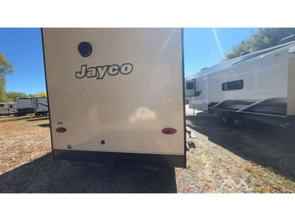 Each Jay Flight Bungalow travel trailer by Jayco features a Magnum Truss roof system, 12 in. I-Class cambered structural steel I-beams, and an insulated and enclosed underbelly for added protection against the elements. You will love the open living space and the atrium-style front wall, along with oversized side windows and hardwood look vinyl flooring. An on-demand tankless water heater will provide endless hot showers, and you're sure to stay comfortable with two A/C units. These travel trailers also include an AM/FM/Bluetooth stereo and marine grade exterior speakers, a power awning with an LED light, an outside shower, plus many more exterior conveniences!