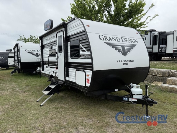 With any Transcend One travel trailer by Grand Design, you will enjoy lightweight towing thanks to their single axle. There are many interior comforts to make camping easier than ever, such as recessed lighting, residential countertops, and a 6' 6" interior height. Each model is constructed with a heated and enclosed underbelly with suspended tanks, a moisture barrier floor enclosure, and Thermofoil over the roof and front cap for added protection. And a JBL sound system will let you listen to tunes as you visit under the power awning with a Fusion light!