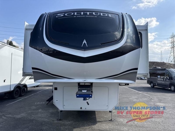 Each Solitude fifth wheel by Grand Design features a 101" wide-body construction, heavy duty 8,000 lb. axles, frameless tinted windows, and high-gloss gel coat sidewalls. You can camp during harsh weather thanks to the Weather-Tek Package that includes a 35K BTU high-capacity furnace, an all-in-one enclosed and heated utility center, and a fully enclosed underbelly with heated tanks and storage. Inside, you'll love the premium roller shades, hardwood cabinet doors, solid surface countertops, plus residential finishes throughout to make you truly feel at home. Each model also includes a MORryde CRE3000 suspension system, and a MORryde pin box that will provide smooth towing from home to campground. Affordable luxury is possible with the Solitude fifth wheels; choose yours today!