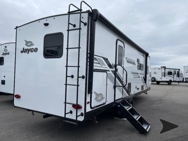With any Jay Feather travel trailer by Jayco, you will enjoy lightweight towing, convenient exterior amenities, and at-home comforts inside! The Overlander 1 Solar Package included within the Jay Sport Package comes with a 200W solar panel and a 30-amp digital controller so you can enjoy some off-grid camping. There is also a modern graphics package, Solid fold-down step with aluminum tread steps on the main entry doorstep, and Climate Shield 0 -100° F tested weather insulation package that will allow you to camp in various types of climates. The Customer Value Package will make time outdoors easier than ever with a power tongue jack and Automotive-style aluminum rims, plus radial tires with self-adjusting electric brakes. More exterior features include a Keyed-Alike doors, a Magnum Truss roof system, and the list goes on! And we haven't even touched on the interior comforts, like the seamless countertops and Residential vinyl flooring throughout, decorative kitchen backsplash, handcrafted hardwood door/drawer fronts, and multiple USB charging ports to keep you going!