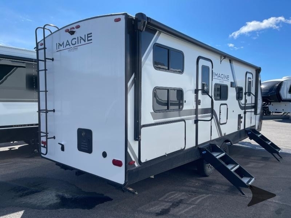 Just imagine leaving the world behind and secluding yourself away with your favorite people in your Grand Design Imagine travel trailer! The Imagine has been designed to enjoy camping and includes a high-capacity furnace, a heated and enclosed underbelly with suspended tanks, a designated heat duct to the subfloor, and a high-density roof insulation with attic vent. You'll have a large panoramic window to let natural lighting in and an adjustable Power Awning with LED Lights for those night gatherings. The exclusive drop-frame pass-through storage compartment is going to allow you to bring along lots of equipment, and the universal docking station is an all-in-one location for utilities and hook-ups. You'll also have oversized tank capacities so that you can fill and empty your tanks less often.