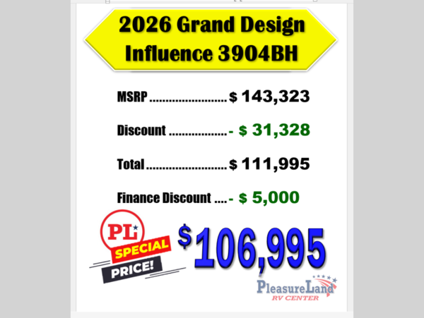 Grand Design Influence fifth wheel 3904BH highlights: