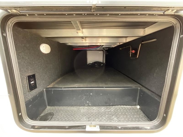 Get ready to enjoy everything the campgrounds and surrounding area has to offer when you are setup to camp in this fifth wheel! The two electric awnings offer protected areas creating outdoor living spaces, just grab your camping chairs from the unobstructed pass-through storage. And the interior offers a spacious living area and kitchen combination with two slide outs. You can sit on the tri-fold sofa or the booth dinette with an option for a swivel dinette. The hutch and kitchen island offer counter space to prepare and serve meals, and there is a large pantry for goodies. The 40" LED HDTV with fireplace below provides entertainment before bedtime or on a rainy day. And the front bedroom offers privacy, a walk-around queen bed, storage, and it is next to the full bathroom which is just a few steps down the hallway.