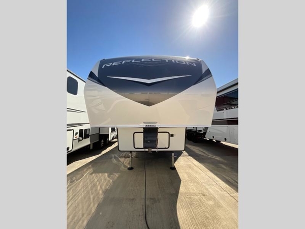 With any Reflection 150 Series fifth wheel by Grand Design, there is more available payload capacity and a broader range of half-ton trucks capable of towing this fifth wheel, and no slider hitch is needed thanks to the 90-degree turning radius which makes them short bed friendly and easier to tow. The mandatory Ultimate Power package provides a "One-Touch" automatic leveling system and a detachable power cord with LED light for easy setup, plus motion sensor pass-through lighting and entry lighting, and the Tire Linc TPMS will help you stay safe on the road. The interior offers residential luxury from the cabinetry and premium congoleum flooring, plus the booth dinette to the residential-style window treatment. Make your refined decision today!