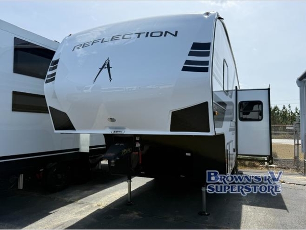 Each Reflection 100 Series fifth wheel by Grand Design is affordable and packed with luxury for unforgettable camping memories! The MorRyde CRE3000 suspension system and Goodyear Endurance tires will provide smooth towing from home to campground. And the solar package with a 180W solar panel, 60 Amp charge controller and 12V refrigerator will allow you to camp for longer periods of time and in more locations! A heated and enclosed underbelly with circulating heat is included in the Arctic 4-Seasons Protection Package, along with a double insulated roof and front cap, and thermofoil insulation under the holding tanks so you can camp all year long if you choose. You will appreciate having an on-demand water heater for hot showers after exploring, and the universal all-in-one docking station will let you monitor your RVs tanks levels and functions with ease. These models also include many luxurious interior features, such as premium Congoleum flooring, pleated shades, residential cabinetry, and matte black fixtures and hardware. Don't let the Reflection 100 Series fifth wheels pass you by!