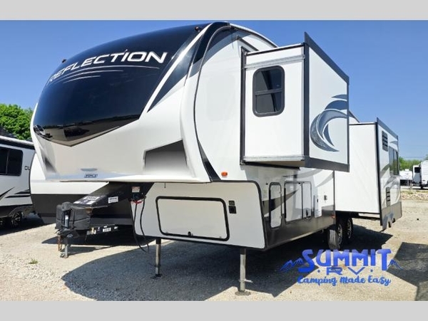 Luxury, value, and towability is what you will find in every one of these Reflection fifth wheels and travel trailers by Grand Design! The mandatory Arctic 4-Seasons Protection package allows you to camp all year round with the 35k BTU high capacity furnace, the Thermofoil insulation, and the heated and enclosed underbelly with circulating heat. Their gourmet kitchens have everything you will need to create home cooked meals including a deep, seated stainless steel sink with a high rise faucet with a pull down sprayer to make clean up easier too. The ductless flooring means there are no floor vent covers to collect dirt or debris, and the universal docking station is an all in one heated location with an EZ winterization system. Easily open the pivoting AXISTEP which will help eliminate debris and moisture from falling inside the unit and also goes all the way down to the ground to make it more stable when entering. Start your next camping trip in true luxury!