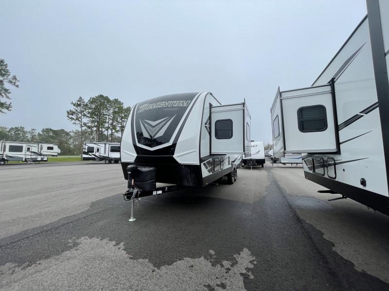 The public has spoken, and Grand Design has answered with the introduction of the all-new Momentum G-Class to its toy hauler lineup. The lighter G-Class series is built without surrendering any of the legendary quality, innovation, and functionality that our family of Momentum owners have come to love. Ceiling and slide-out heights still stand tall along with our wide-body platform to create a feeling of spaciousness.