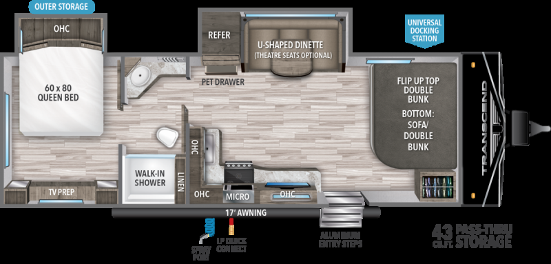 Grand Design's Transcend continues our pursuit of building around the needs of our customers. Where others surrender quality, function and features, Transcend focuses on the needs of consumers --- open floorplans, functional design, and towable with many of today's half-ton trucks and SUVs. Transcend: Quality Driven, Customer Focused, Built to Last.