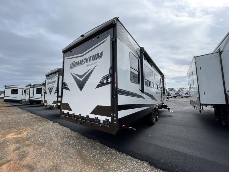 The public has spoken, and Grand Design has answered with the introduction of the all-new Momentum G-Class to its toy hauler lineup. The lighter G-Class series is built without surrendering any of the legendary quality, innovation, and functionality that our family of Momentum owners have come to love. Ceiling and slide-out heights still stand tall along with our wide-body platform to create a feeling of spaciousness.