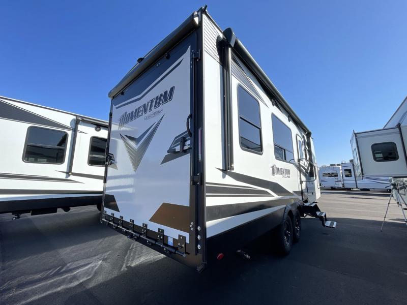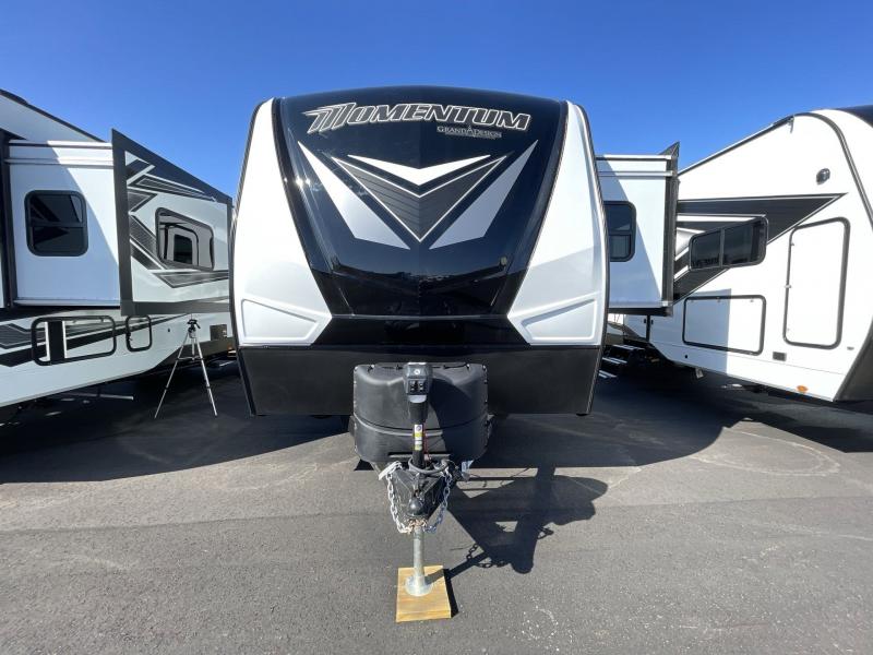 The public has spoken, and Grand Design has answered with the introduction of the all-new Momentum G-Class to its toy hauler lineup. The lighter G-Class series is built without surrendering any of the legendary quality, innovation, and functionality that our family of Momentum owners have come to love. Ceiling and slide-out heights still stand tall along with our wide-body platform to create a feeling of spaciousness.