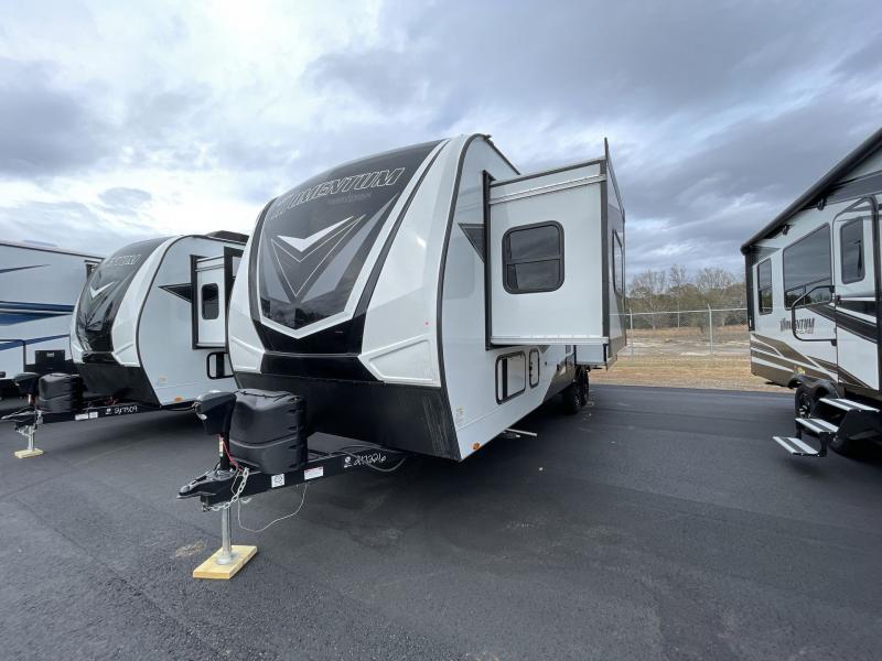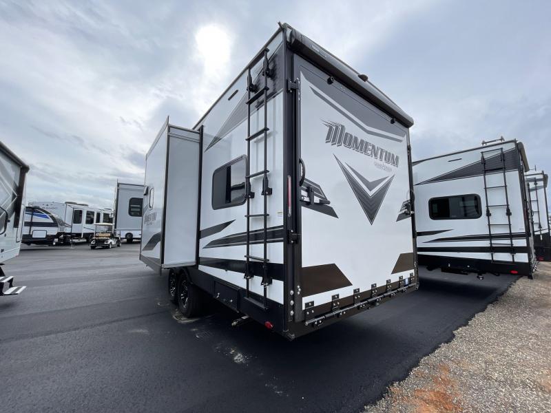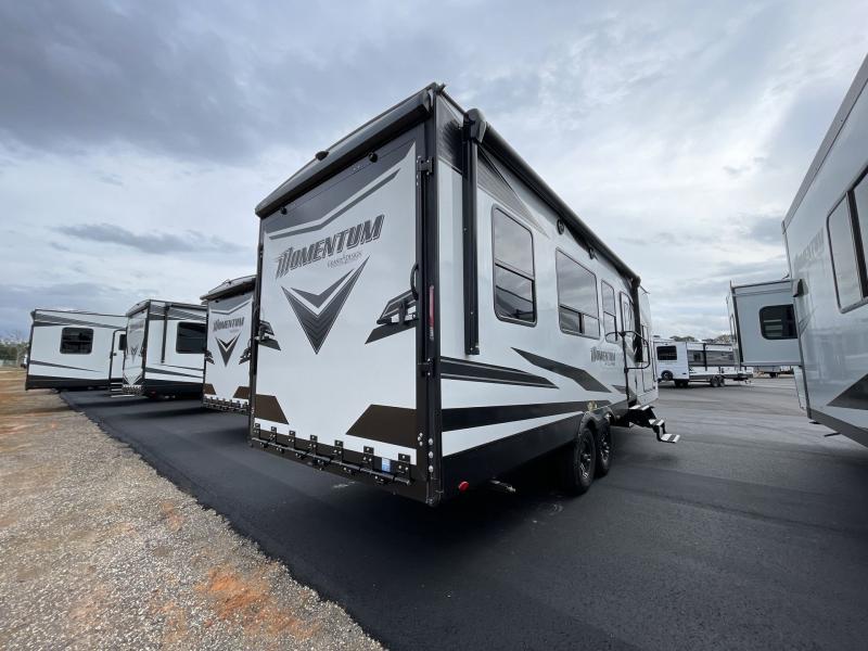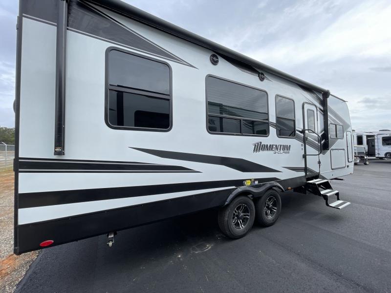 The public has spoken, and Grand Design has answered with the introduction of the all-new Momentum G-Class to its toy hauler lineup. The lighter G-Class series is built without surrendering any of the legendary quality, innovation, and functionality that our family of Momentum owners has come to love. Ceiling and slide-out heights still stand tall along with our wide-body platform to create a feeling of spaciousness.