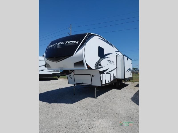 With any Reflection 150 Series fifth wheel by Grand Design, there is more available payload capacity and a broader range of half-ton trucks capable of towing this fifth wheel, and no slider hitch is needed thanks to the 90-degree turning radius which makes them short bed friendly and easier to tow. The mandatory Ultimate Power package provides a "One-Touch" automatic leveling system and a detachable power cord with LED light for easy setup, plus motion sensor pass-through lighting and entry lighting, and the Tire Linc TPMS will help you stay safe on the road. The interior offers residential luxury from the cabinetry and gunstock hardware plus the booth dinette to the residential-style window treatment. Make your refined decision today!