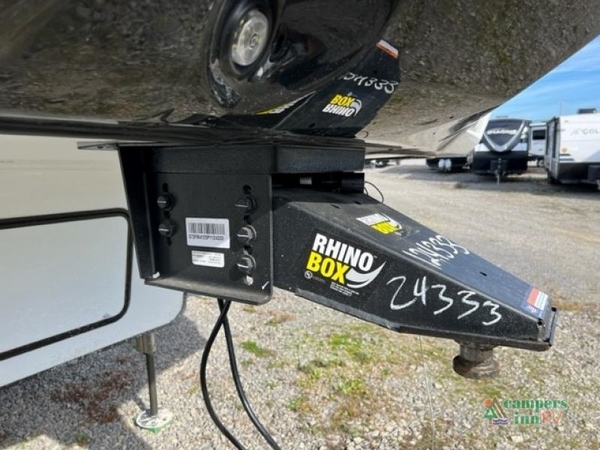Everyone will stay clean with a full and half bath in this Momentum M-Class toy hauler, plus there is an exterior spray port to keep the sand outside! The kitchen is decked out in everything you will need to create a home-cooked meal including a kitchen island with bar stools, a fold-up countertop, and a USB charging port to keep your phone close by as it charges. There is also a hutch to store your nice dishes and a microwave for those nights when you don't feel like cooking. The four-seat sofa slide has a storable table for you to eat your meals and play a card game while you enjoy the entertainment center. The front private bedroom has a queen bed with USB charging outlets on either side and a wardrobe slide with drawers to keep your clothes looking their best! If you would prefer to have an 18-cubic foot RV refrigerator, you should check out model 351M!