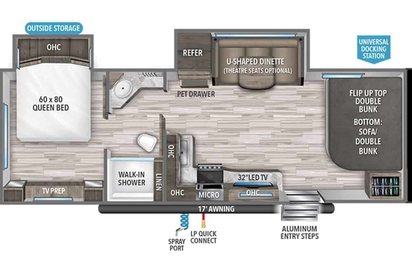 Have a look at this new bunkhouse from Grand Design! The rear queen bed is on a slide to create a spacious bedroom with lots of storage. The walk-thru bathroom has a large step-in shower and extended vanity. There is an oversize U-dinette or optional theater style sofa, and bunks with bottom bunk that converts into a sofa! You'll love the long countertops and modern appliances. This fantastic new Transcend XPLOR 251BH is available at Camperland of Oklahoma!