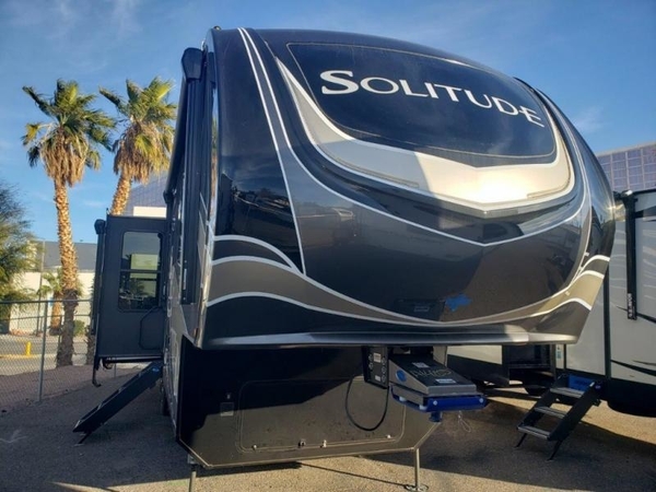 With any Solitude fifth wheel by Grand Design, you will get maximum insulation from the thermal roof design, the exclusive fully laminated walls, the triple insulated main floor, the Rail-Tite underbelly seal, the insulated gooseneck and the insulated baggage doors. The MORryde rubber pin box system utilizes a unique rubber shear spring to positively deal with rough towing and road shock, the Tire Linc TPMS system monitors pressure and temperature, and the 6-point hydraulic system allows you to setup easily. And the upgraded shower system, the hardwood window valances, the oversized kitchen pantry, the window above the master bed headboard, and the Rockford Fosgate stereo entertainment system with HDMI and App controls are a few more reasons you will love these extended-stay fifth wheels!