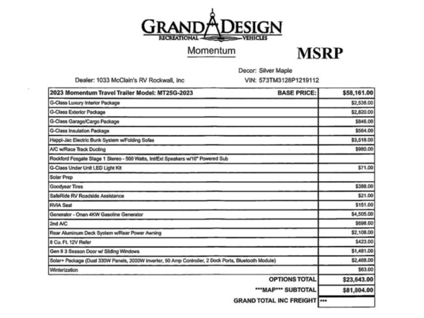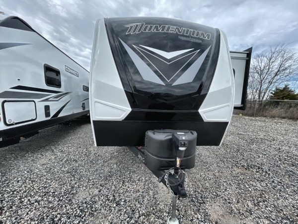 Are you looking for adventure and fun? The Momentum G-Class toy hauler by Grand Design will help you find it! You can explore during any season you choose with the Insulation Package that includes a heated and enclosed underbelly with suspended tanks, a high-capacity furnace, a moisture barrier floor enclosure, and cabinet-mounted heat ducts. Each model includes a 30-gallon fuel station with an interior and exterior gauge, a dovetail rear rend, and 2,500-LB tie-downs anchored into the chassis. Throughout the Momentum G-Class interior, you'll enjoy many comfortable features like large panoramic windows, a shower skylight, USB chargers in the bedroom, and residential cabinetry.